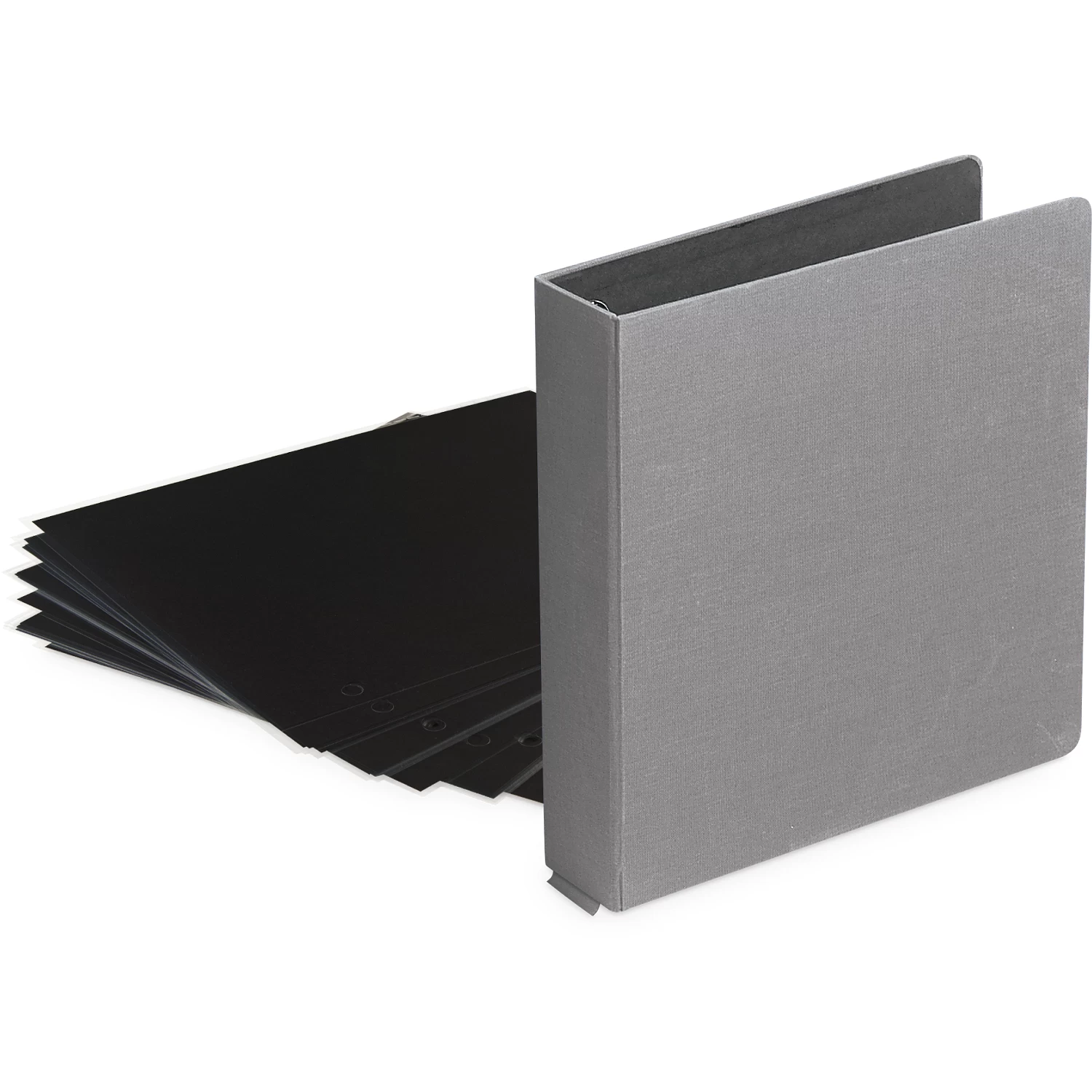 This 1″ D-Ring Buckram Photo Preservation Album with 35 Black Pages & Protectors stores and protects photos for generations to come. The silver grey textured cloth cover is attractive and easy to clean, and the included pages are buffered and acid-free.