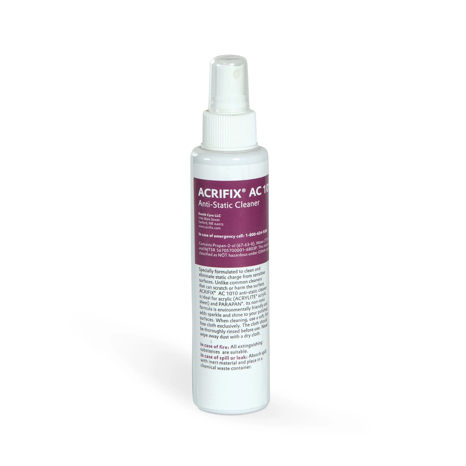 Acrifix® Acrylic Cleaner safely cleans and neutralizes static on acrylic and other delicate surfaces. The spray prevents dust from adhering, keeping the surface cleaner longer.