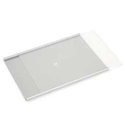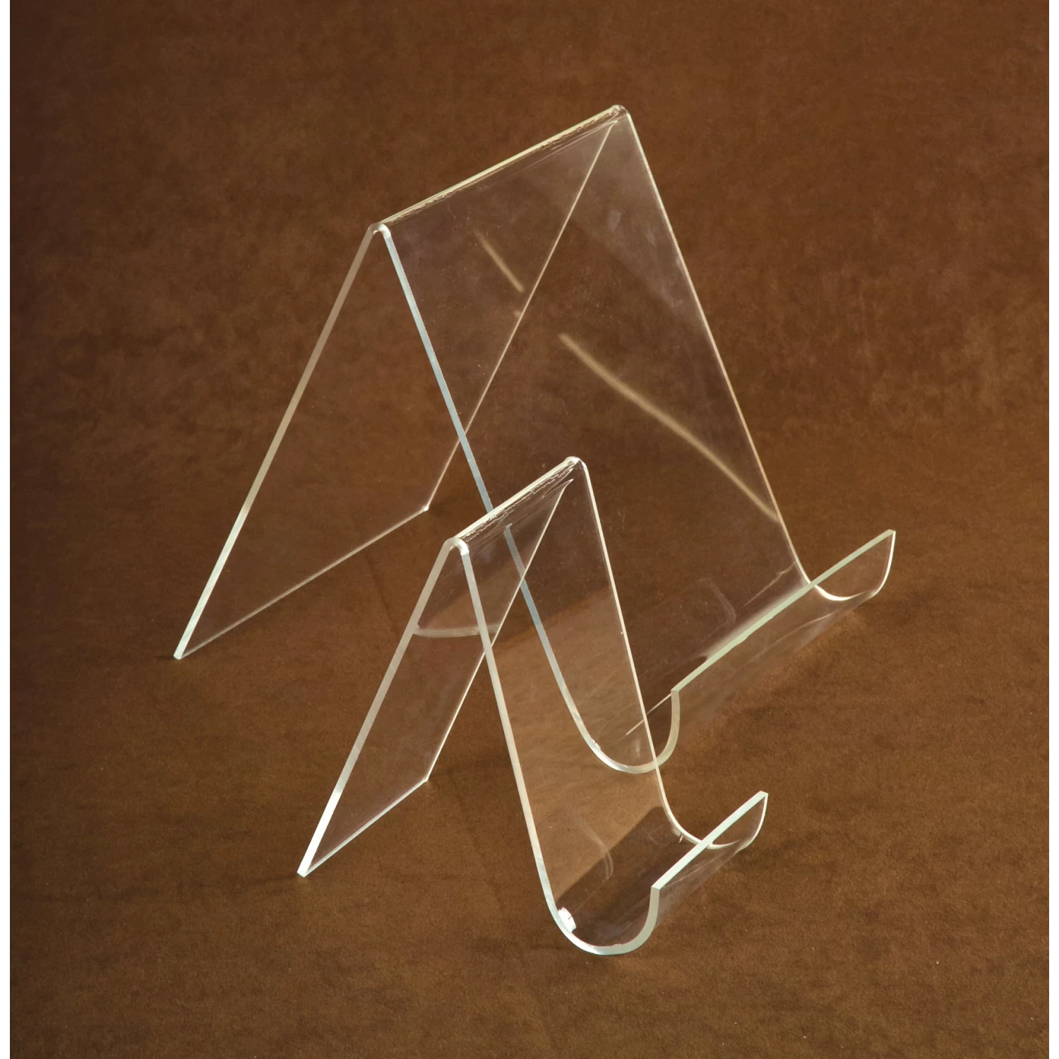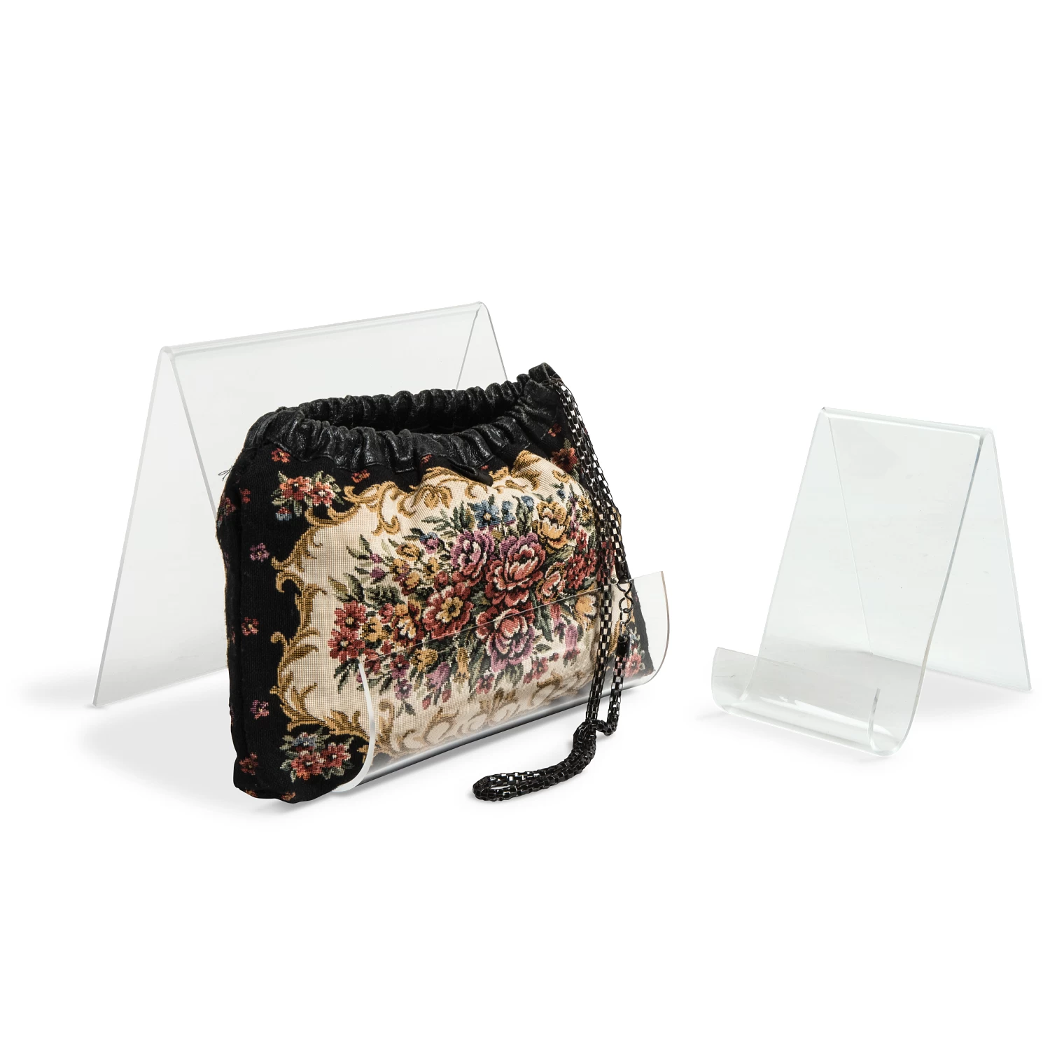 This Acrylic Display J-Easel has a rounded front for safely displaying soft items such as purses and woven pillows.