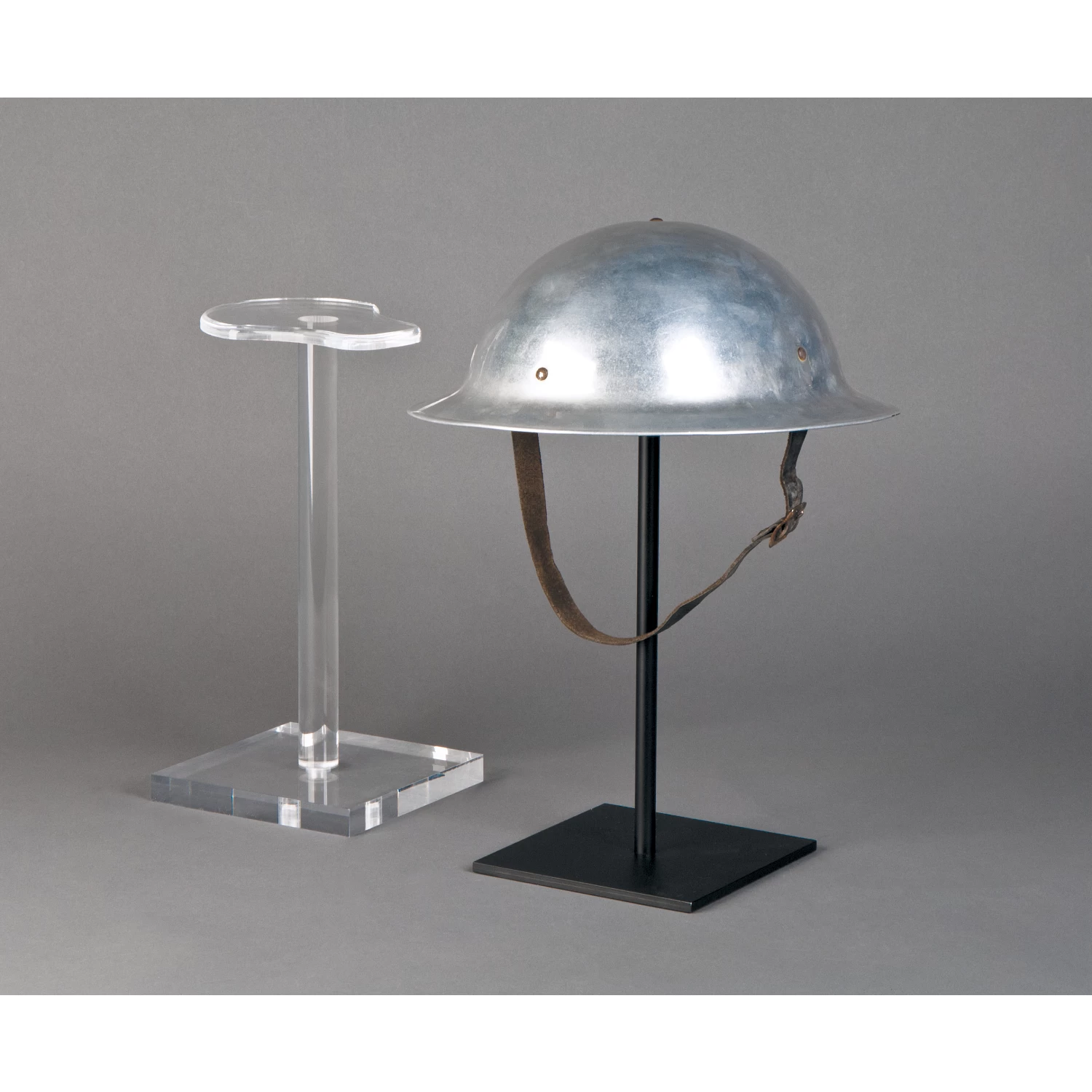 This Acrylic Helmet/Hat Stand raises a hat or helmet for easier viewing in exhibits.