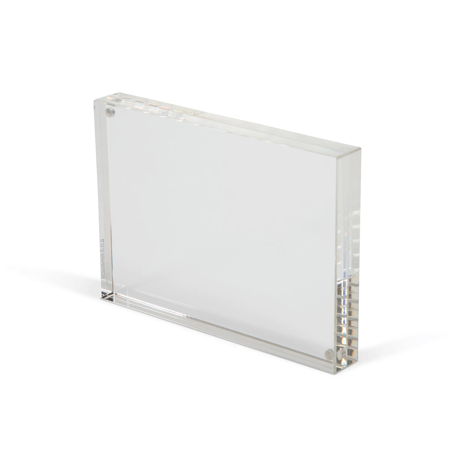 Display your photographs with the Canetti Original Acrylic Magnetic Frame. Tiny magnets hold the two crystal clear, thick acrylic panels together, securing your photo inside. This versatile and simple frame is perfect for tabletop display.