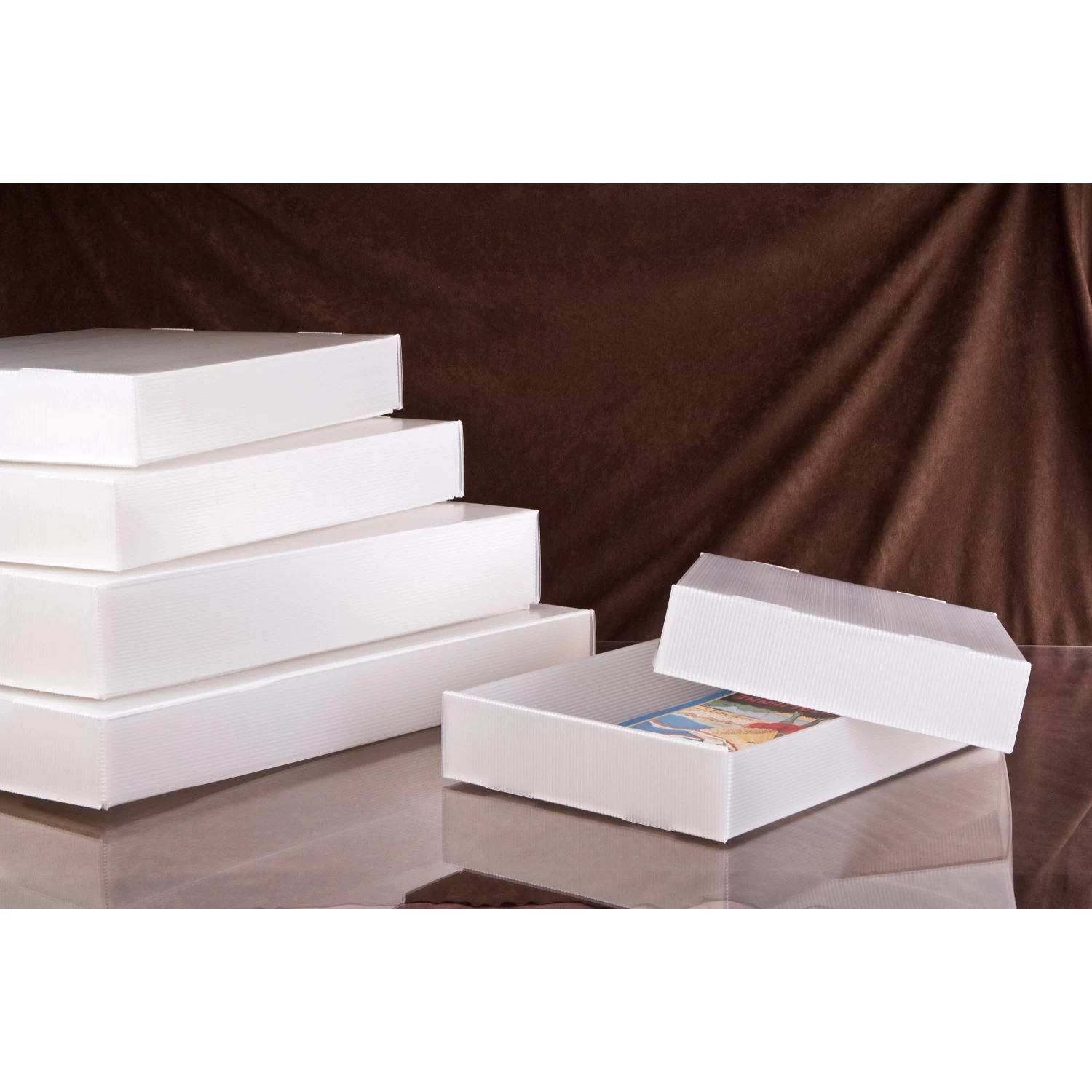 Protect and store prints or loose documents in our Gaylord Archival® Corrugated Polypropylene Print Box. It is made from an extruded fluted plastic that is chemically inert and double-walled for extreme durability. The moisture-resistant material is free from all additives, including UV inhibitors, and therefore is not recommended for areas with UV exposure.