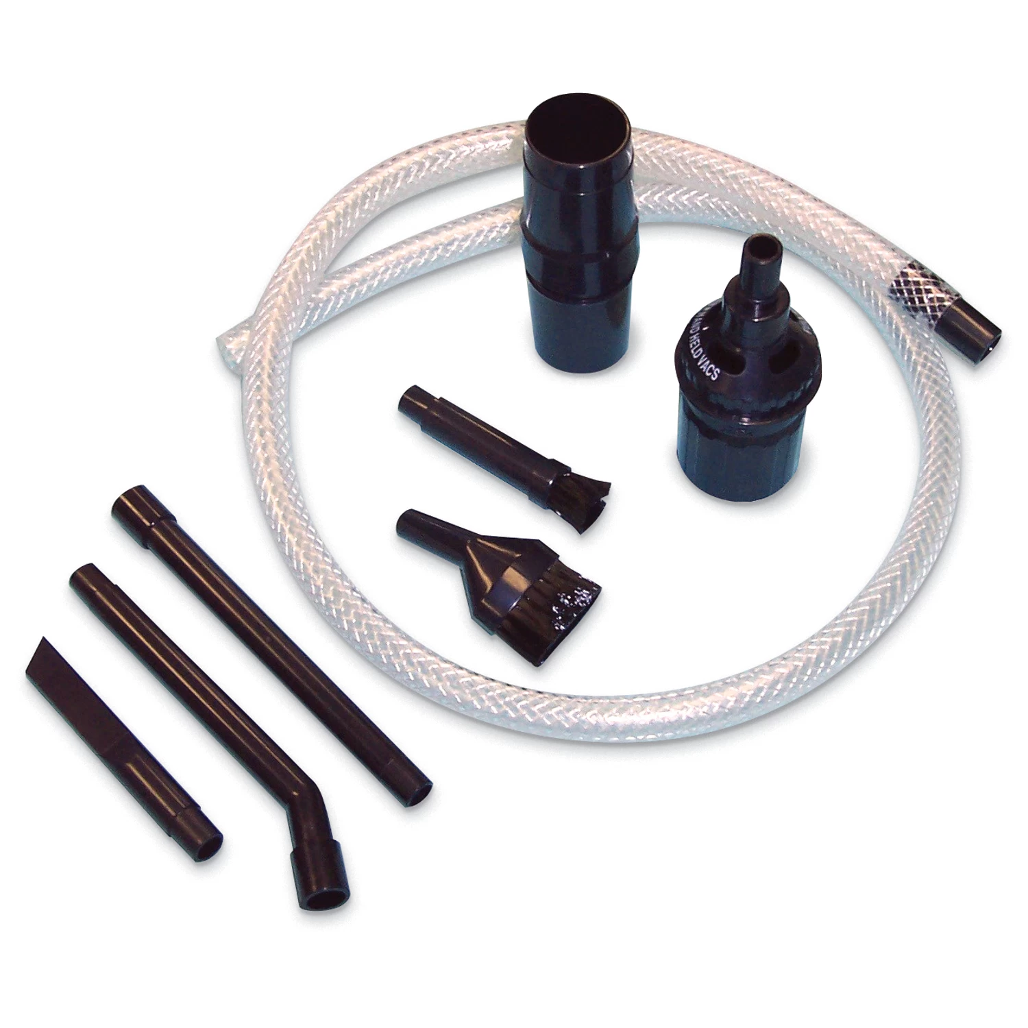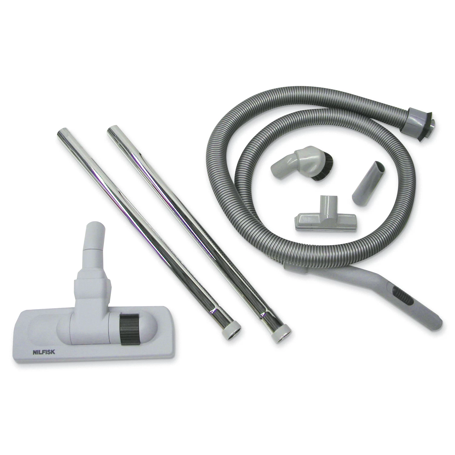 - Includes vacuum, 6 1/2 ft. plastic hose w/curved tube and bleeder, microfilter, two straight steel wands, 3″ dust brush, 2-in-1 floor nozzle w/retractable brush, 5″ upholstery nozzle, 6″ conductive crevice nozzle, micro tool kit and detachable trolley