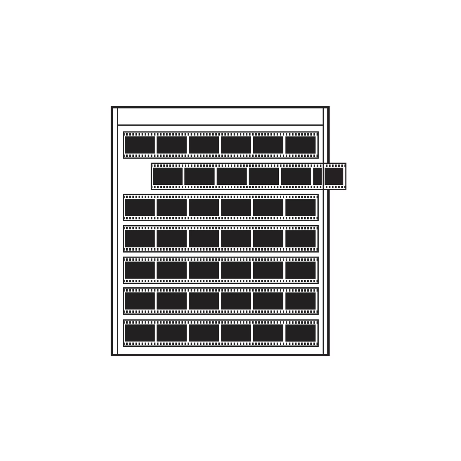 - Holds 42 frames on seven strips