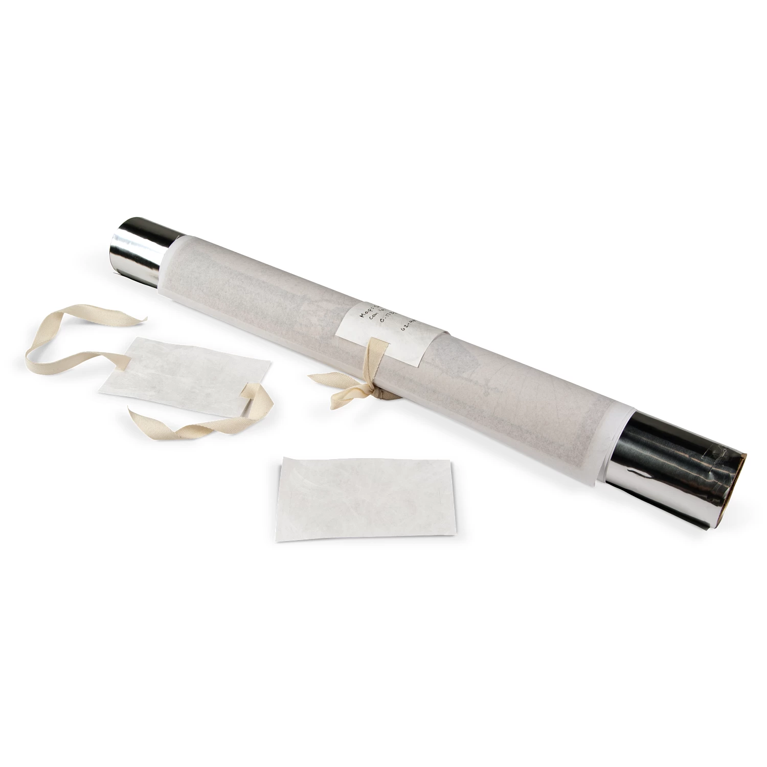 Use these Tyvek® Roll Storage Labels (100-Pack) to safely label documents, textiles and other rolled items. The labels are slit on both short ends so that cotton tying tape (sold separately) can be threaded through and tied around a rolled item. Mark the labels with pencil, Pigma pens, Identi-pens or a stylus.